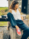 Podés usarlo como chaleco sobre prendas, cerrado o abierto, o solo como top/musculosa.