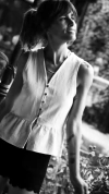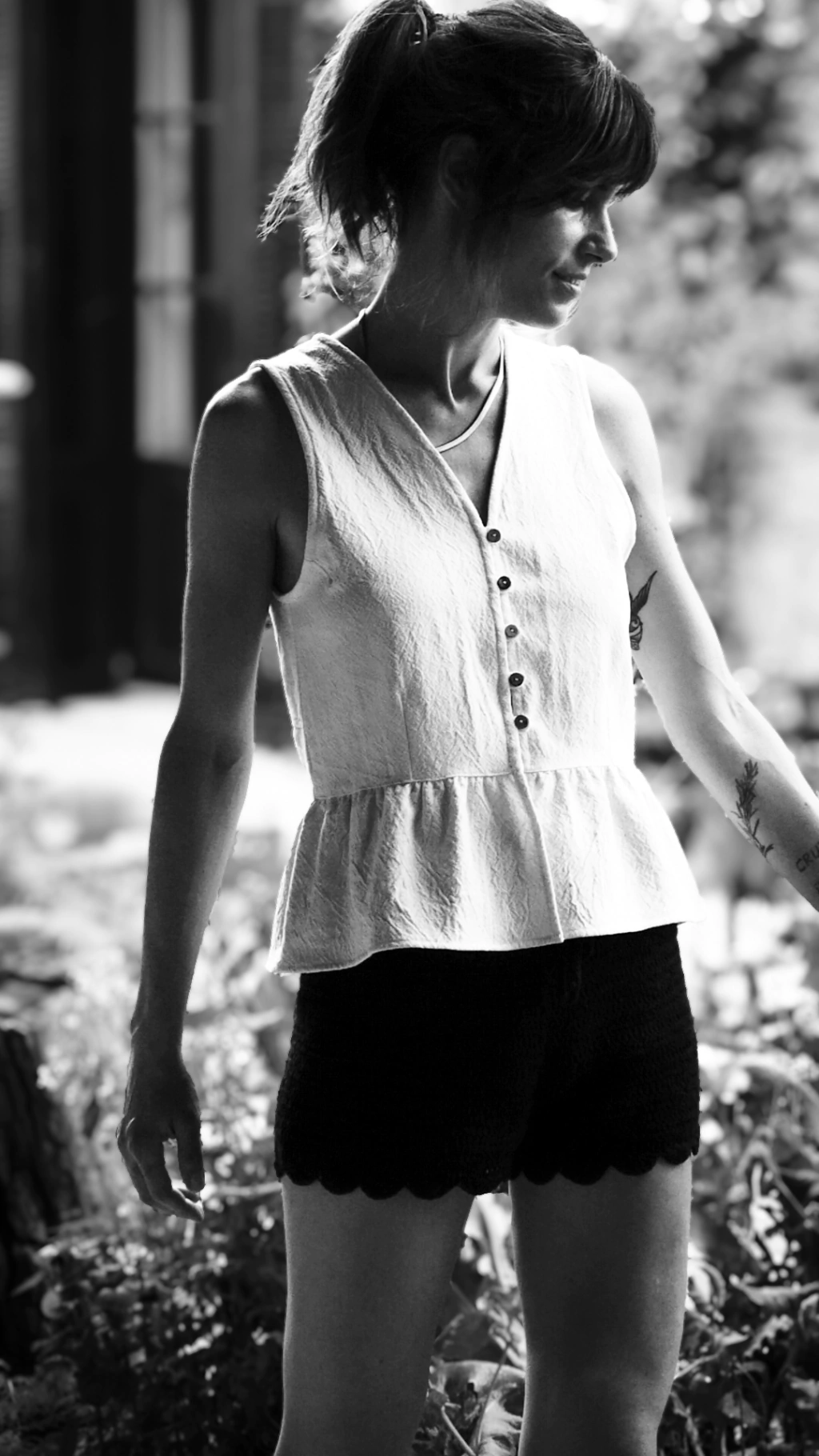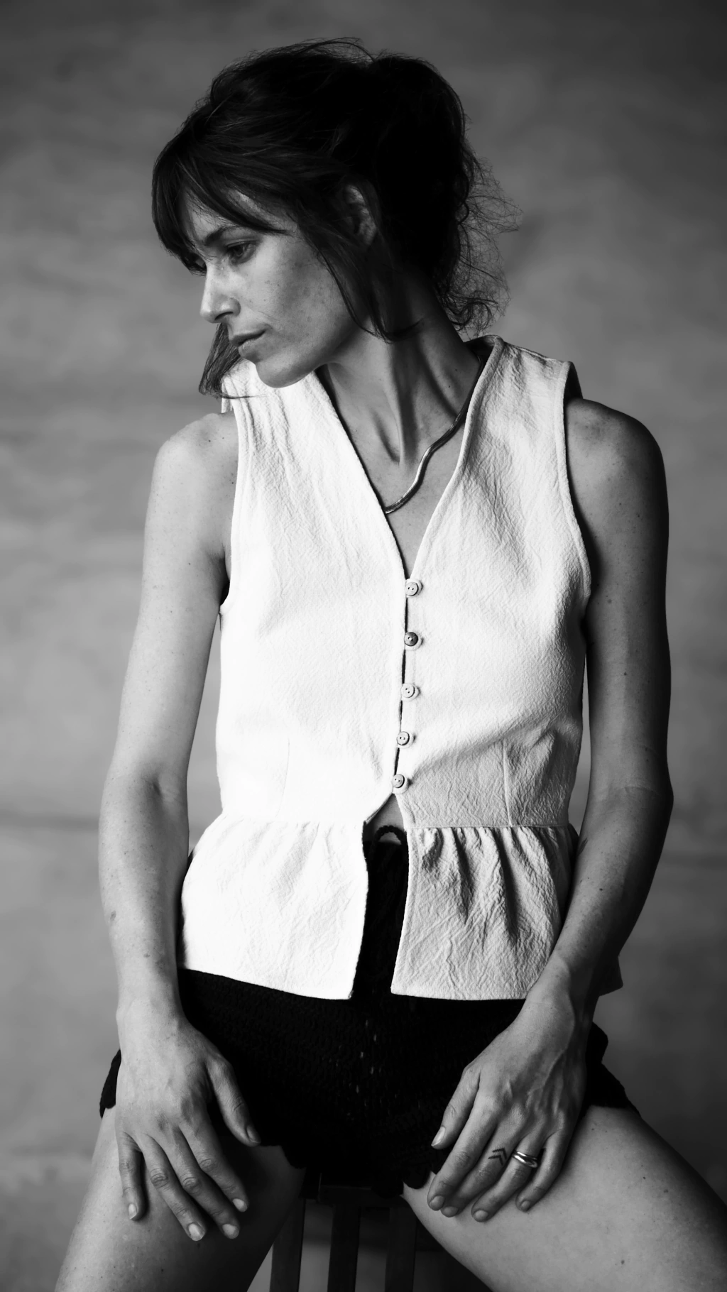 Chaleco de algodón con detalle de vuelo en la cintura que marca y eleva la silueta femenina.