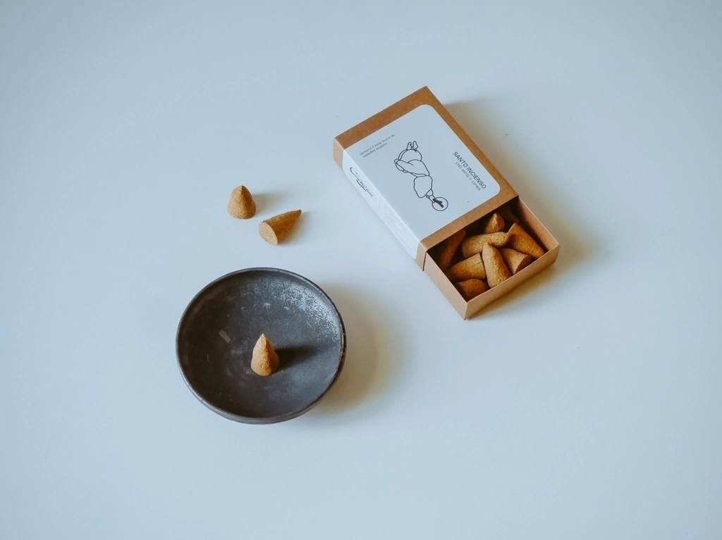 Caja de 15 conitos de incienso de palo santo y canela. Maderas Sagradas de aroma dulce y profundo.